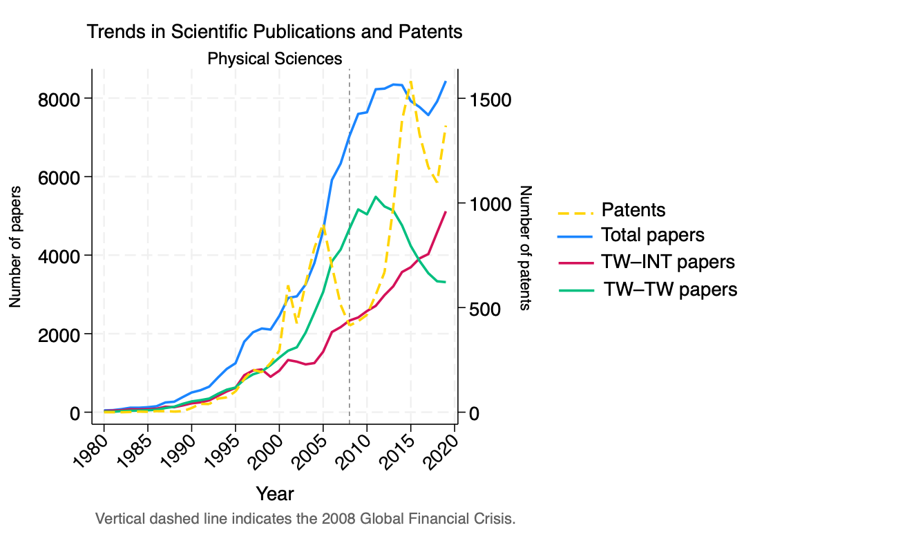 This study examines how academic research, collaboration structures, and innovation co-evolved in Taiwan’s semiconductor-related knowledge base from 1980 to 2019. Using Scopus publications and patent counts, it compares domestic and international research channels as well as different institutional forms of collaboration.